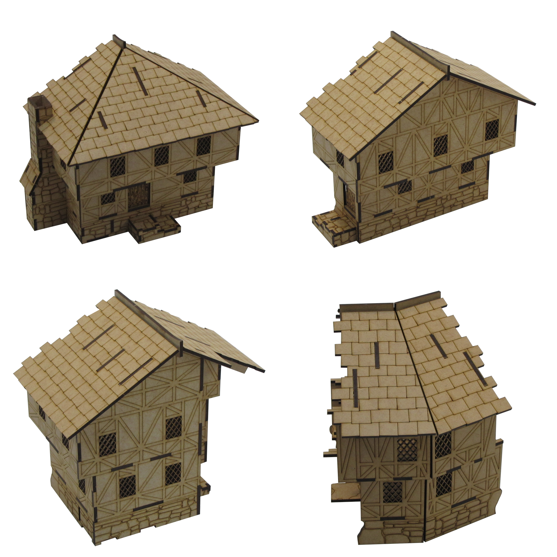 Our Half Houses are designed to give you the maximum flexibility with a limited number of parts. Having the buildings split vertically, rather than by the floors, you are able to better simulate miniatures standing at different levels. The split is also carefully designed to allow any two buildings in this range to fit together giving you a larger variety of unique buildings. Because of the split, it’s possible to line them up next to one another for a street scene that has little indoor play.