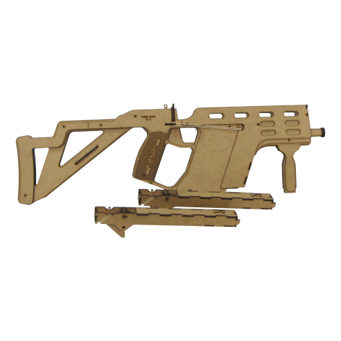 Lock, load, and let the bands fly with the Kriss Vector — a 1:1 scale replica inspired by the iconic Kriss Vector. Built for function, fun, and flair, this laser-cut model brings tactical realism to rubber band warfare.