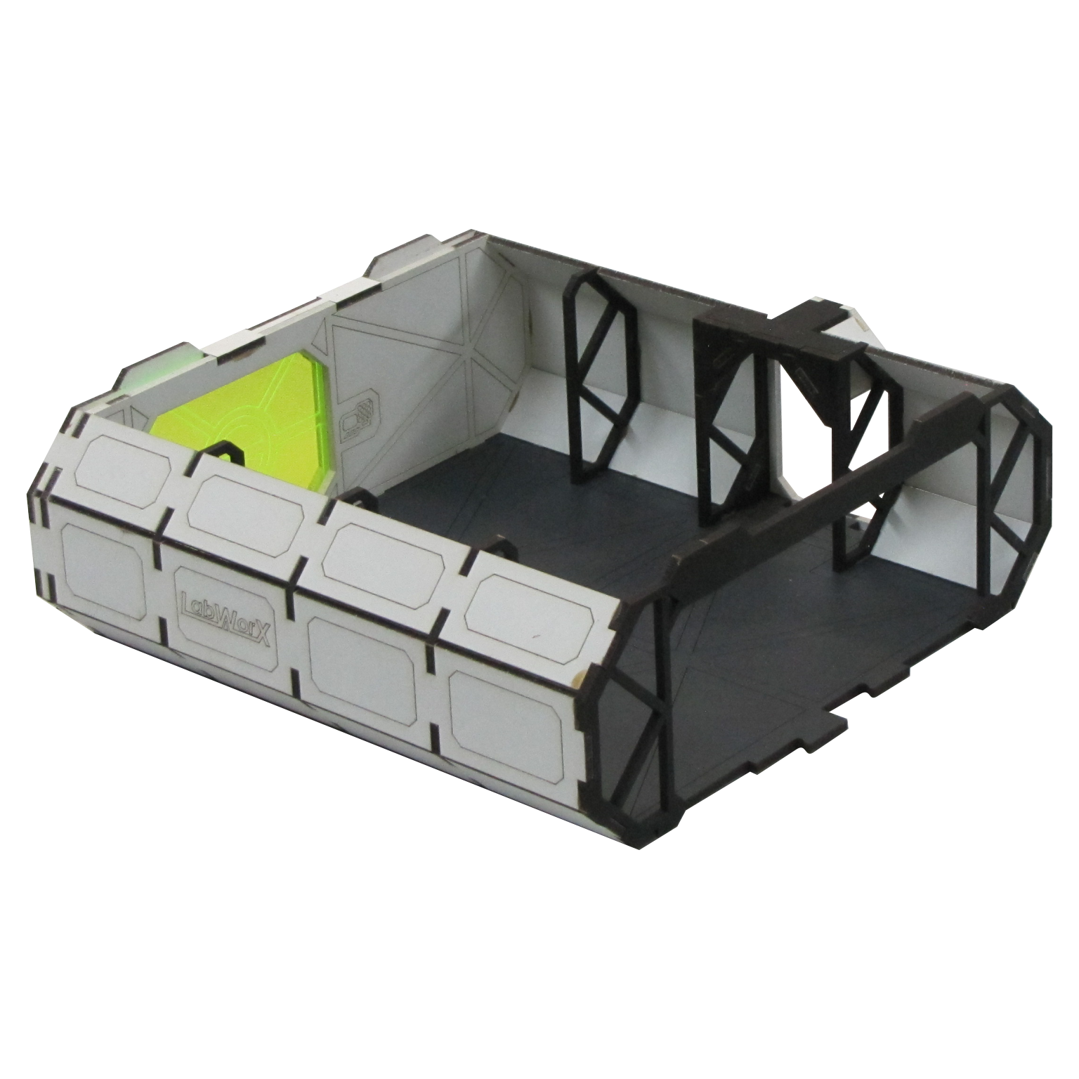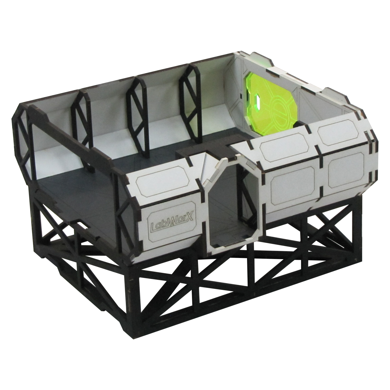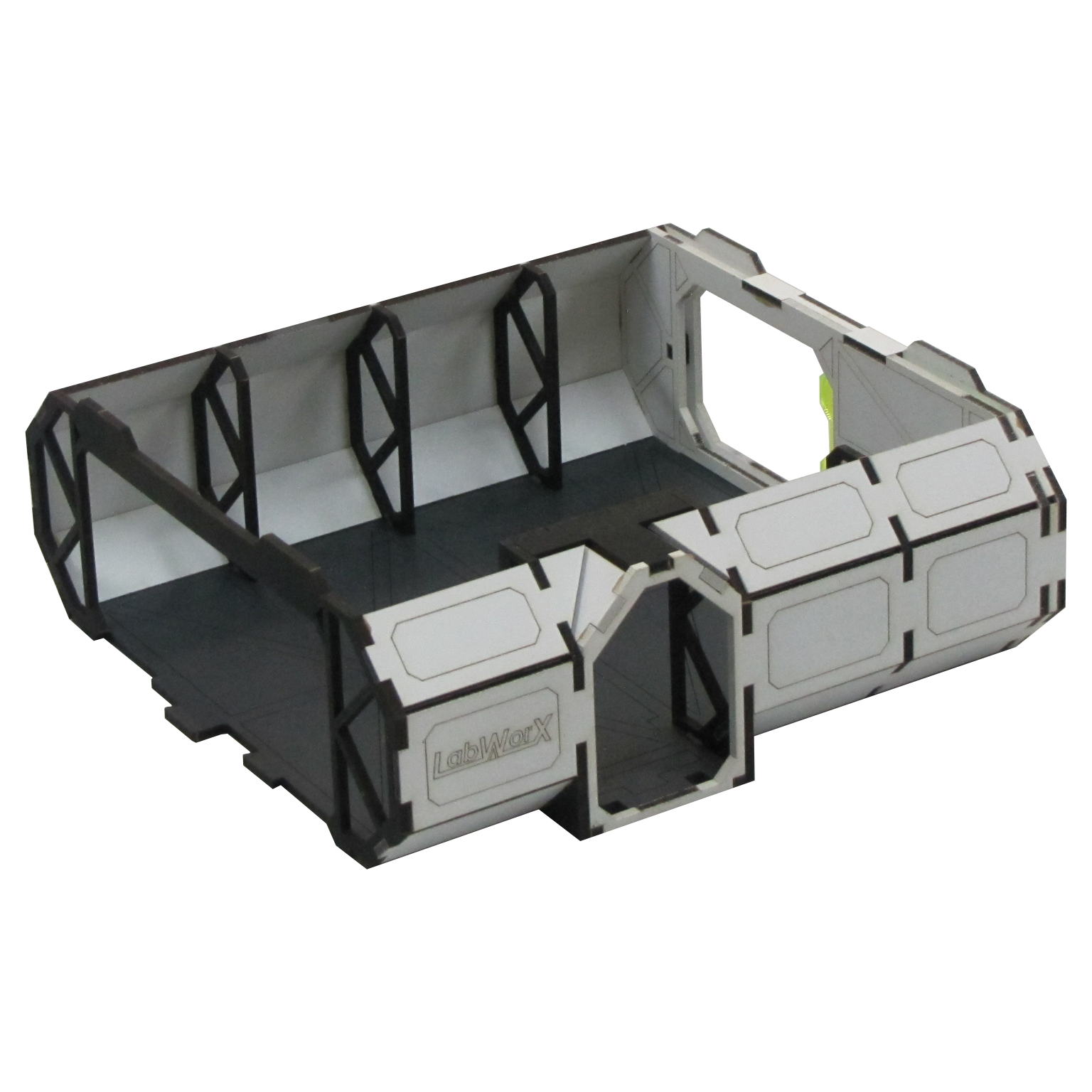 The Straight is the basic model for this series and probably the one you’ll use the most. One end of the Straight is blocked off by a doorway that can open and close and one side of the Straight has an external access door to allow for a more dynamic gameplay.