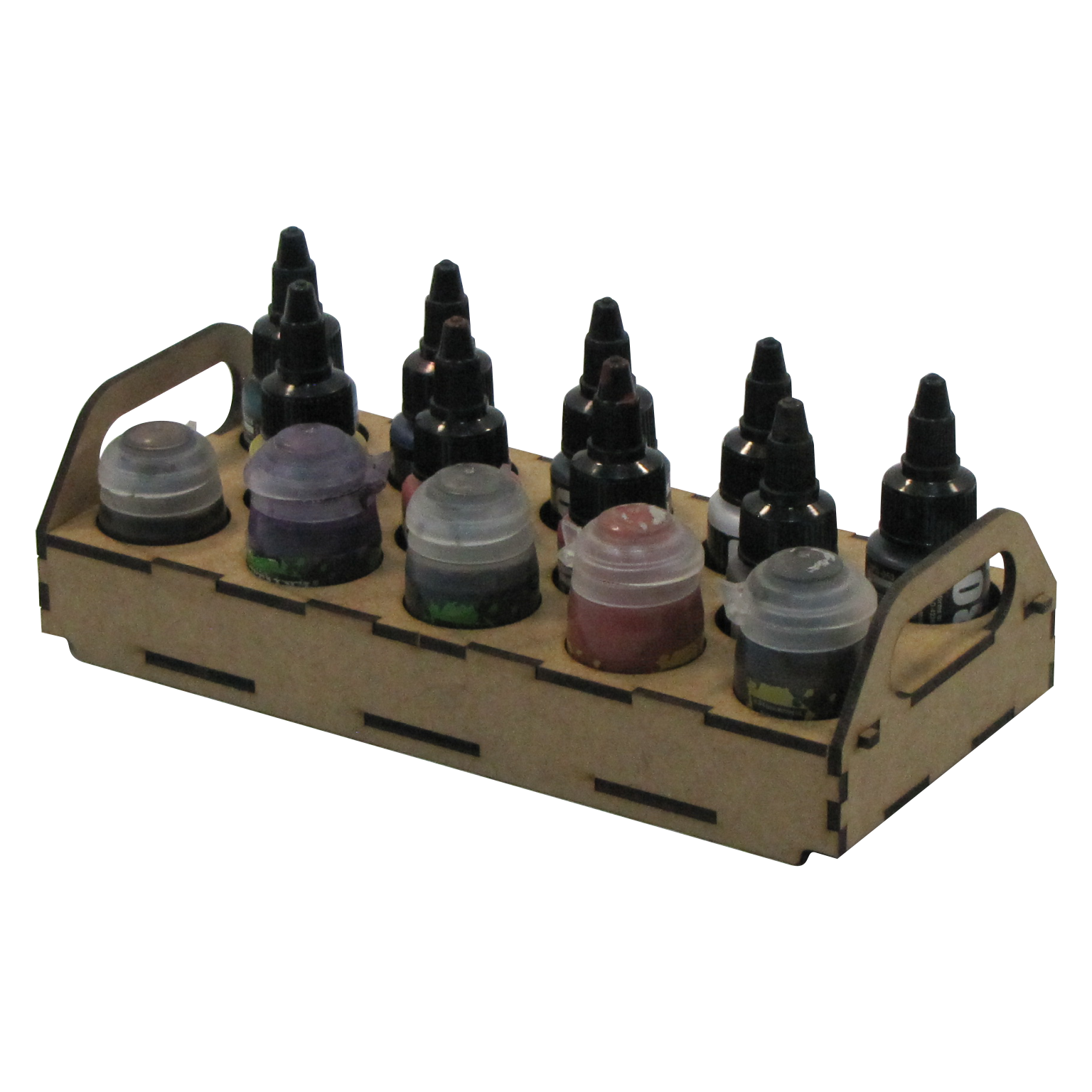 2x Citadel Trays that can take paints such as the Citadel and Pro Acryl ranges. Each tray holds 14 paints, giving you 28 spots for paint.