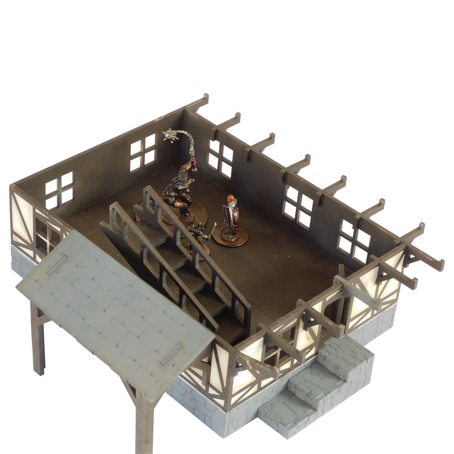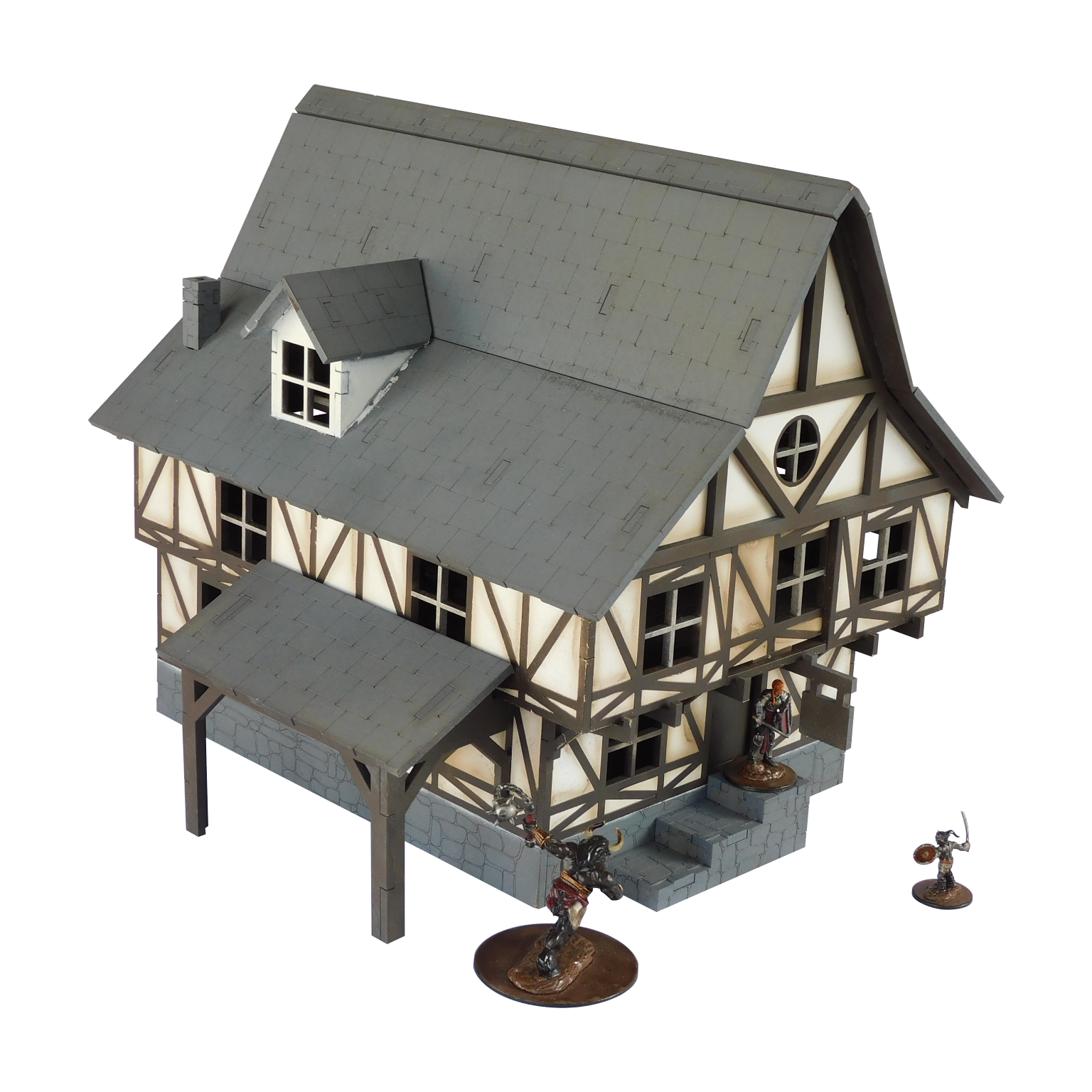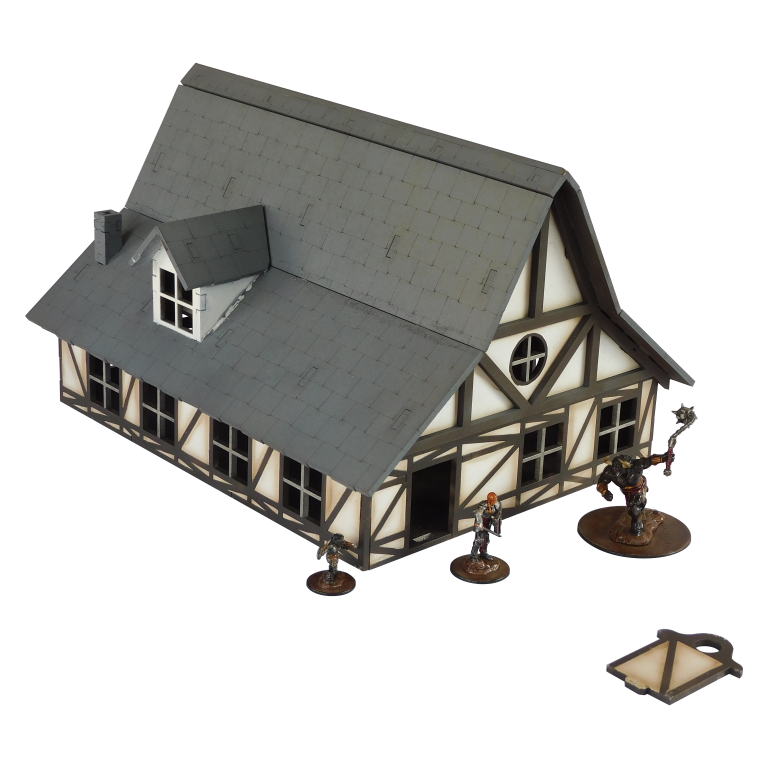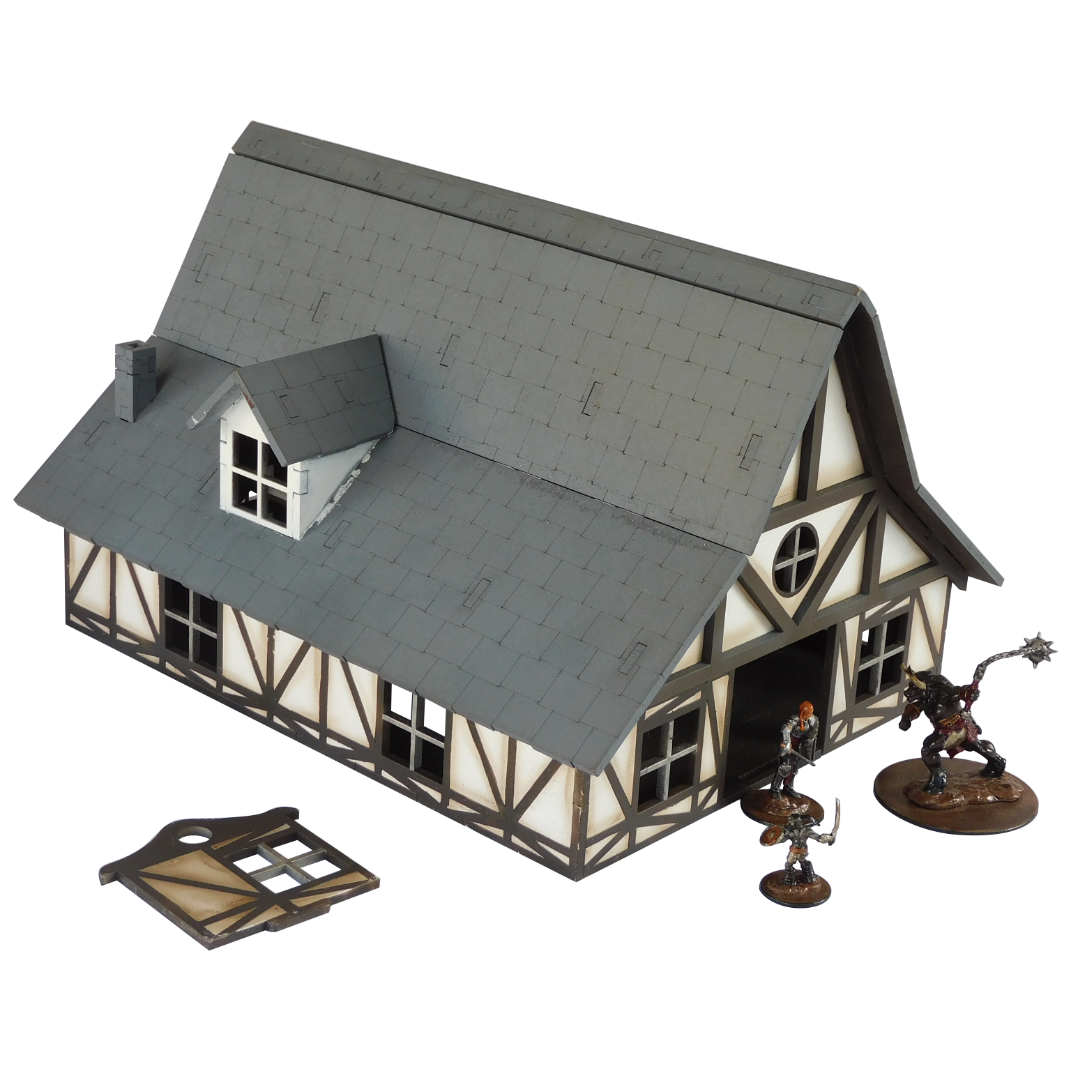 The Tavern is designed to give you maximum flexibility with a single laser cut building. The basic design is for a tavern, but by adding several removable and interchangeable parts the building can just as easily function as a town house, a manor, a shop, a farm house, or a large shed. The building also partially disassembles for storage and transport.