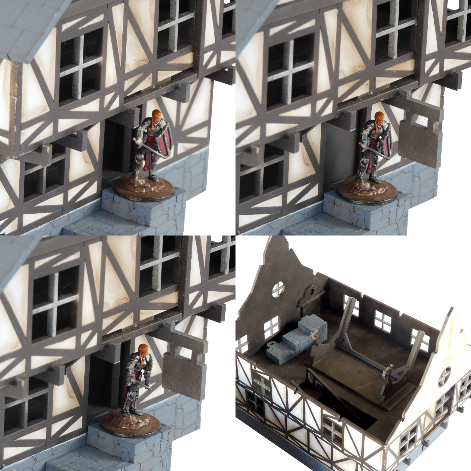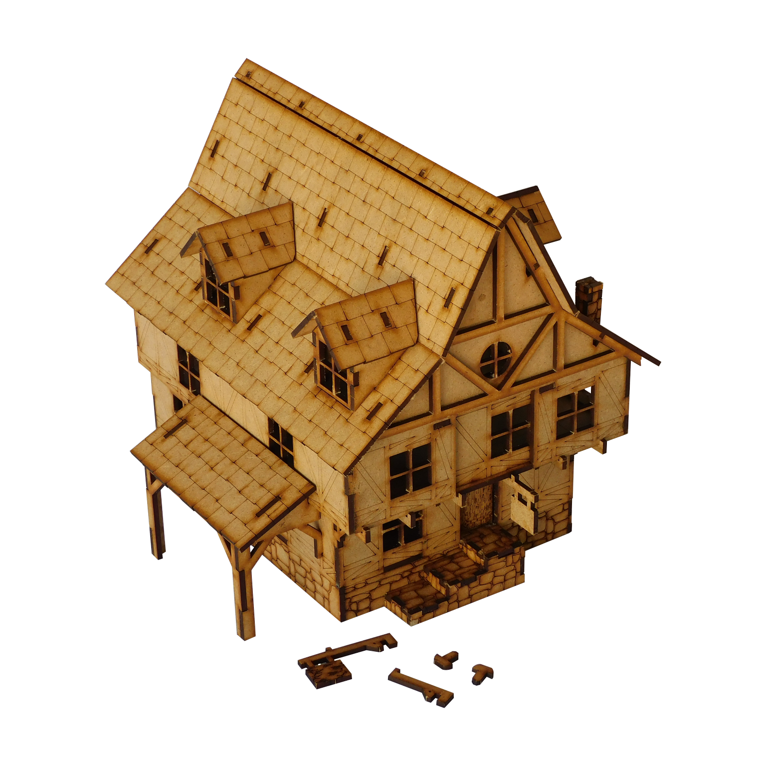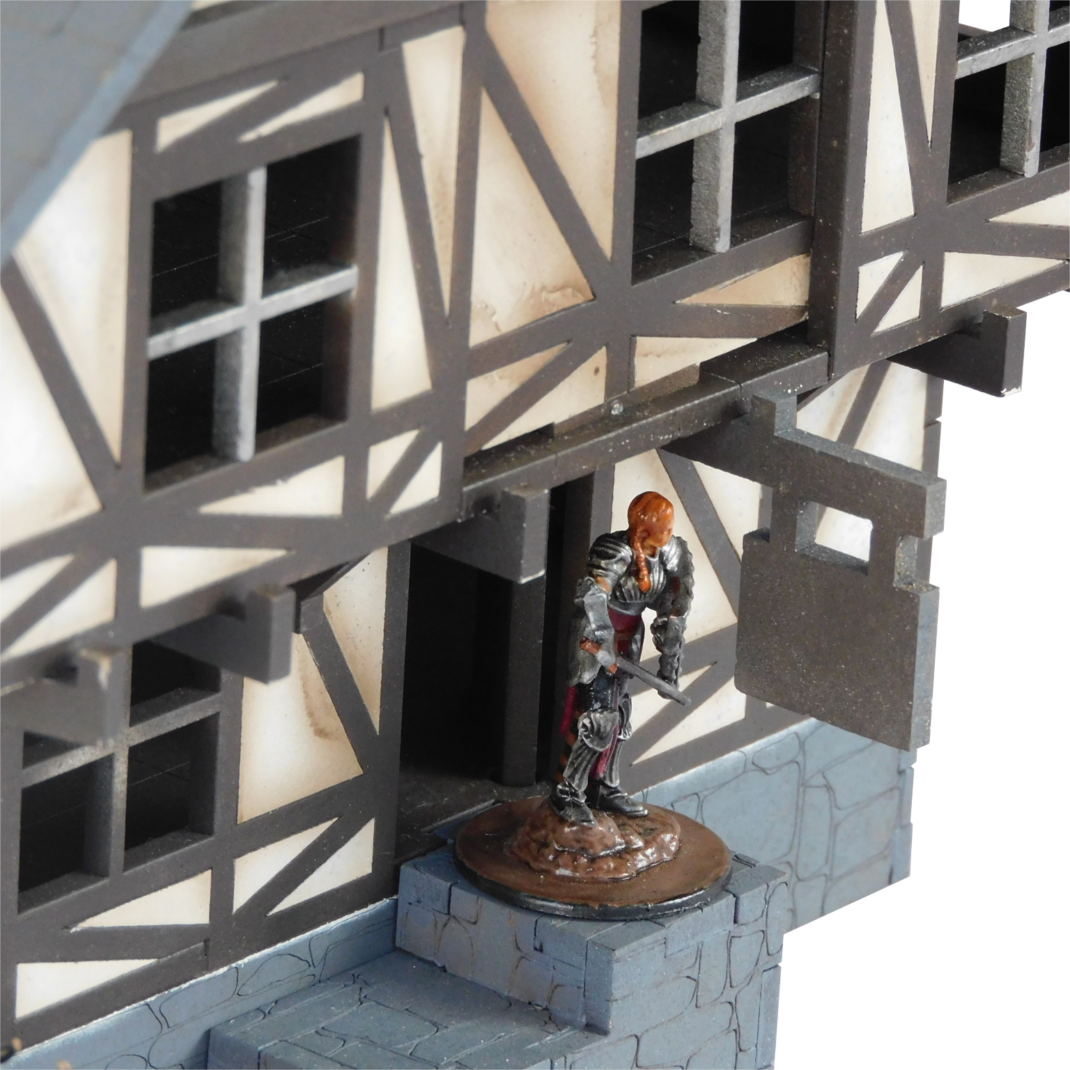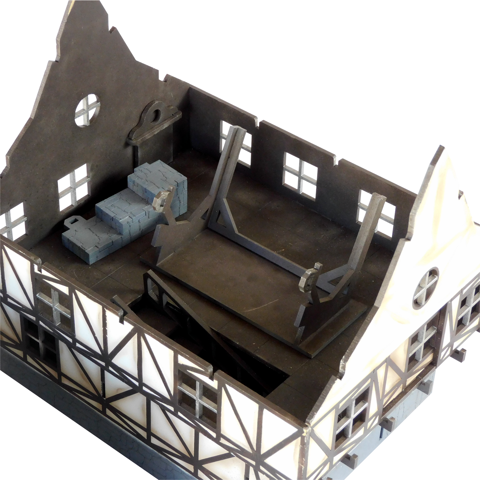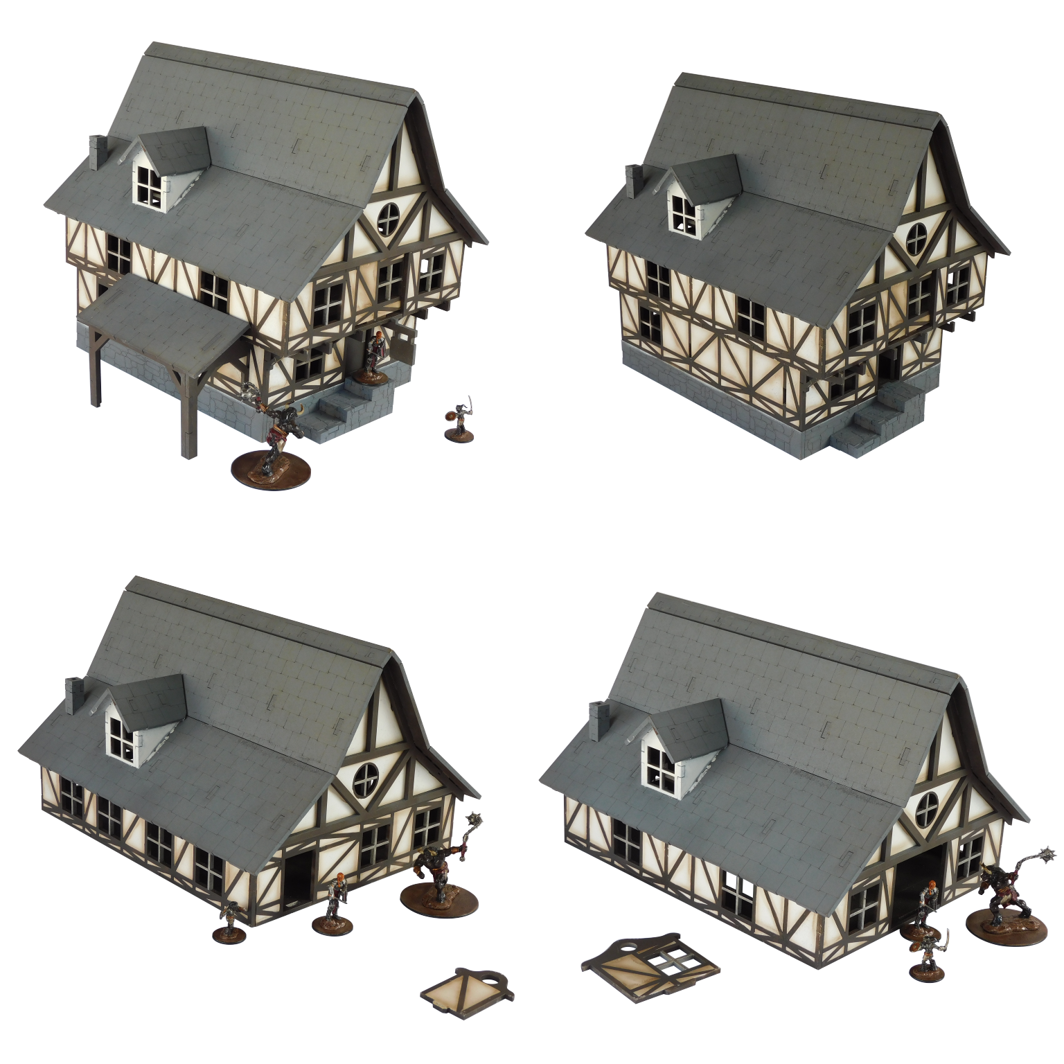 The Tavern is designed to give you maximum flexibility with a single laser cut building. The basic design is for a tavern, but by adding several removable and interchangeable parts the building can just as easily function as a town house, a manor, a shop, a farm house, or a large shed. The building also partially disassembles for storage and transport.