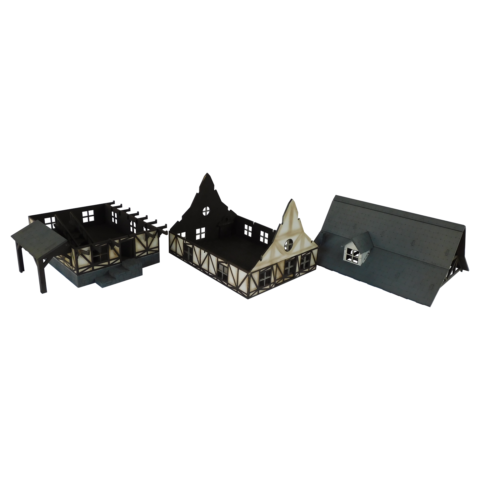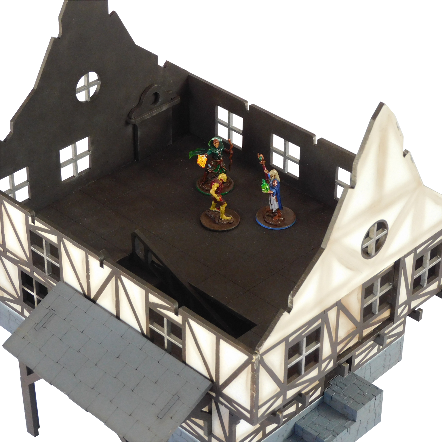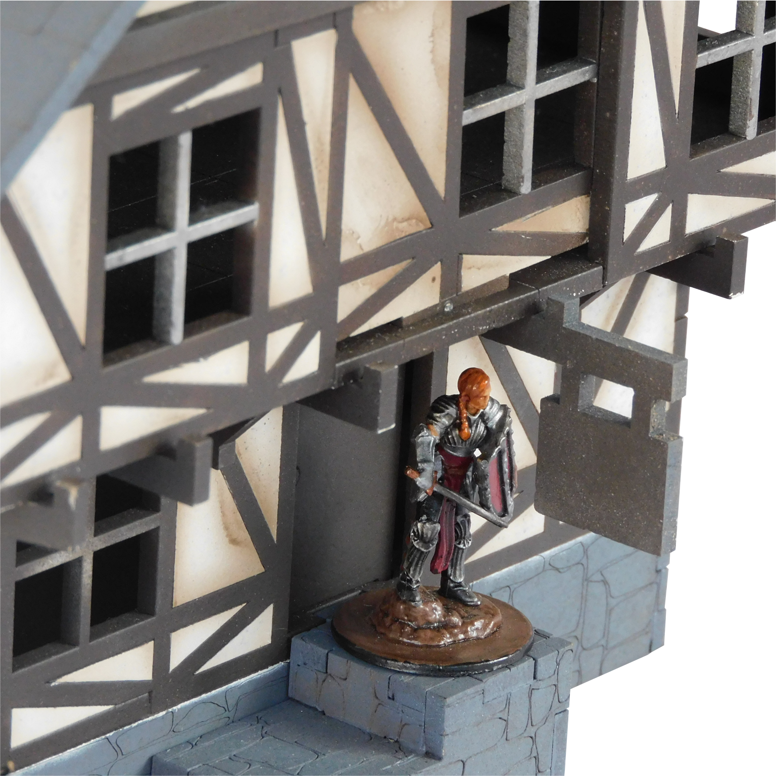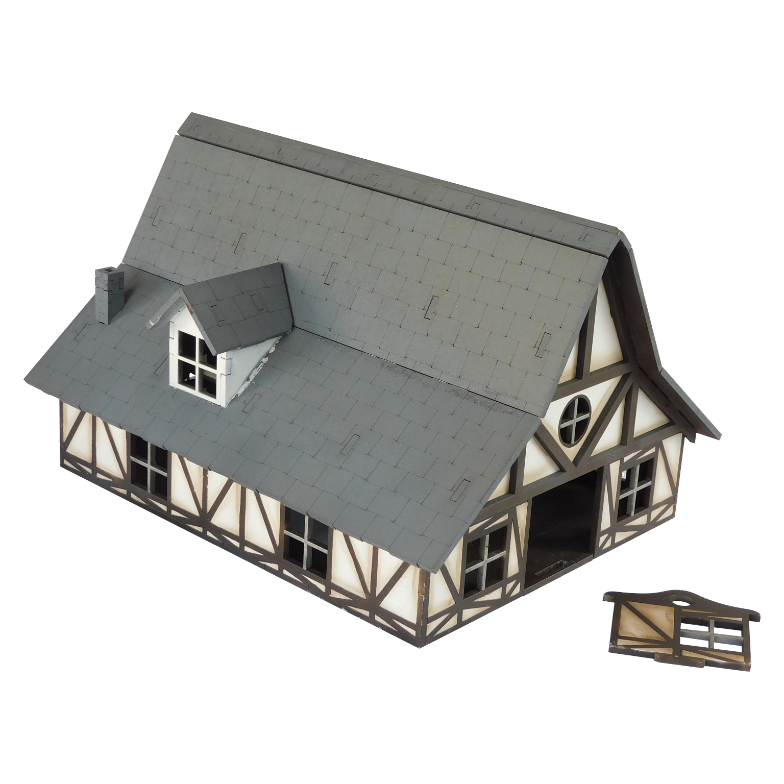 The Tavern is designed to give you maximum flexibility with a single laser cut building. The basic design is for a tavern, but by adding several removable and interchangeable parts the building can just as easily function as a town house, a manor, a shop, a farm house, or a large shed. The building also partially disassembles for storage and transport.